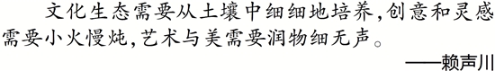 文化生态需要从土壤中细细地培养,创意和灵感需要小火慢炖,艺术与美需要润物细无声。