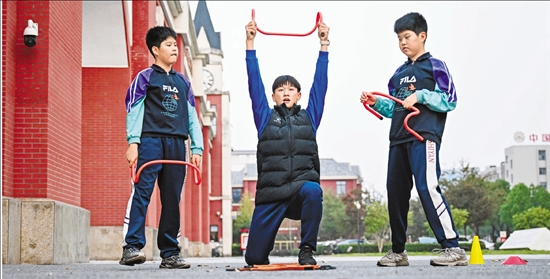 课堂上,教练员金奕超耐心地为双胞胎兄弟示范训练动作。