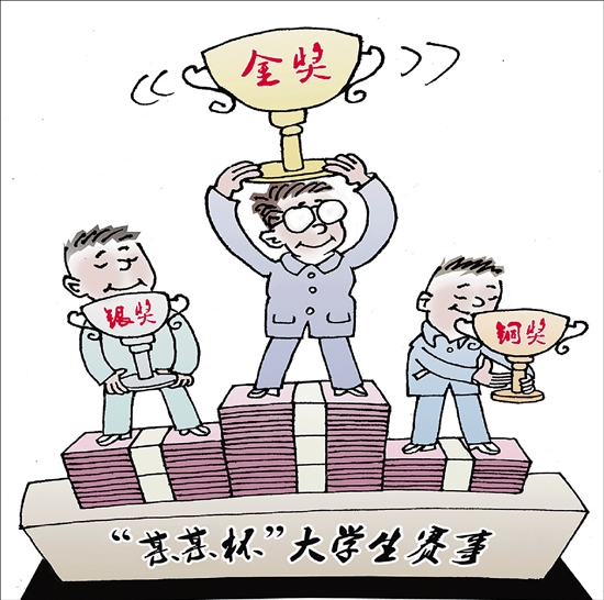 国创赛、挑战杯等国家级大学生赛事本应是公平竞技的赛场,但据《经济参考报》报道,一些中介机构和在校大学生,竟然通过“挂名”和“项目整体售卖”的方式,在网上明码标价出售这些赛事奖项,帮助大学生“躺拿省国奖”。金钱买来的奖杯,恰恰最缺少“含金量”。 蒋跃新 作 |