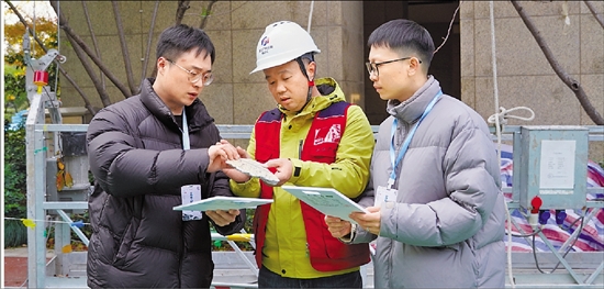 | 杭州市余杭区仓前街道万和社区监察工作联络站聚焦辖区小区外立面维修工程,开展现场监督工作。图为工作人员现场对照施工材料样本,对外墙涂料颜色是否与样本一致、质感是否均匀进行查看,尽职监督护航工程施工廉洁高效。 周晓艳 摄 |