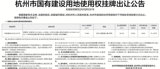 杭州市国有建设用地使用权挂牌出让公告