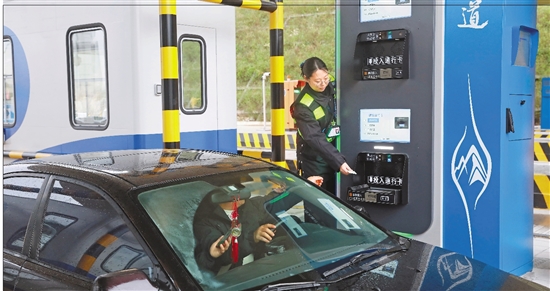 1月1日0时,甬台温高速至沿海高速三门联络线正式通车运营。图为驾驶员驶出三门城区收费站。