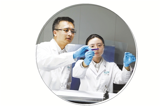 在金田高分子研究院,科研人员开展技术攻关。 企业供图