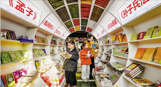 1月3日,金华市区婺州古城一家文创书店内,不少家长带着孩子在书架旁阅读,以书香为伴度过假期。 本报记者 金思成 通讯员 时宽兵 文/摄