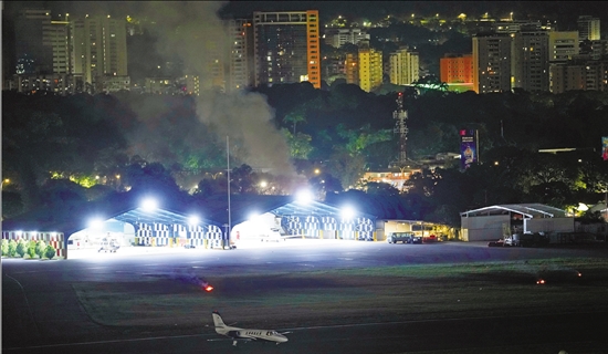 1月3日,委内瑞拉首都加拉加斯拉卡洛塔机场升起浓烟。 新华社/美联