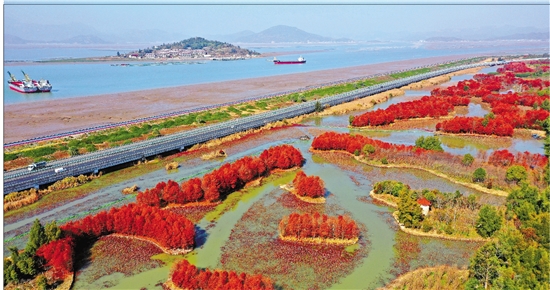 1月14日,玉环市漩门湾国家湿地公园的水杉林进入最佳观赏期,色彩斑斓,美不胜收。近年来,玉环市加大漩门湾国家湿地生态保护力度,打造集休闲、旅游与生态保护于一体的湿地公园。 通讯员 段俊利 摄