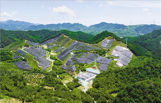 航拍下的浙江省杭州市临安区太湖源镇50兆瓦集中式光伏电站。 本报记者 姚颖康 通讯员 胡建强 摄