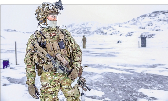 当地时间1月18日,丹麦士兵在格陵兰一处未公开地点进行射击训练。 CFP供图