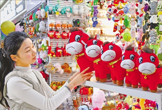 随着马年春节临近,一款“哭哭马”公仔玩具成为义乌市场的爆款产品。图为1月18日,义乌市国际商贸城一区玩具销售区,客商在订购“哭哭马”毛绒玩具。