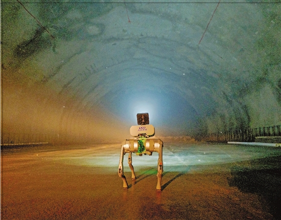 连日来,浙江交通集团甬台温改扩建台州北段项目岩峰隧道双连拱扩挖施工现场,机器狗在隧道内执行安全隐患巡查任务。据悉,该项目以无人机巡飞、机器狗巡检等方式,用科技力量提升高速公路建设的安全标准与效率。 通讯员 徐建春 徐建挺 文/摄
