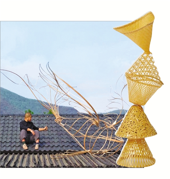 左图:郭航与其团队作品“竹鲲”。 右图:竹编水滤。 本文图片均由受访者提供