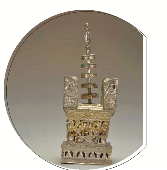 五代十国吴越国鎏金纯银阿育王塔,浙江省博物馆藏。