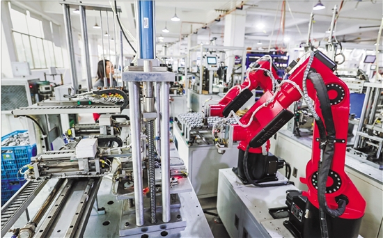 1月29日,在位于金华市金东区的金华精研机电股份有限公司车间内,自动化流水线上在生产充气泵。 新华社记者 徐昱 摄