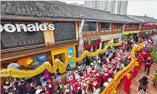 “来宁波·过大年”2026宁波文旅新春系列活动之长桌宴在海曙区南塘老街开席,市民、游客共享新春大餐。 本报记者 贺元凯 通讯员 唐严 摄