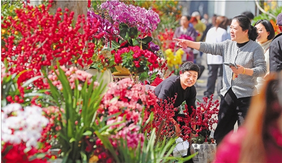 2月15日,杭州凤起东路的凤起花鸟城内花团锦簇,不少市民前来选购鲜花,为新春增添喜庆氛围。 本报记者 林云龙 摄