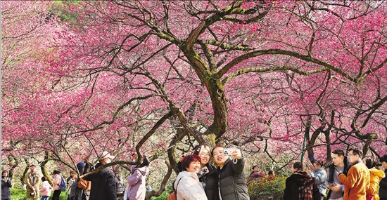 近日,杭城气温回升,杭州植物园灵峰景区内的梅花进入最佳观赏期,市民和游客纷纷趁着春节假期前来赏梅。