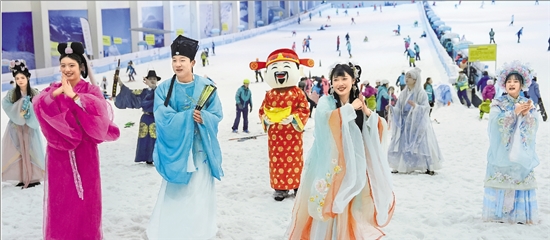 | 2月21日,绍兴柯桥启迪乔波冰雪世界迎来客流高峰,不少上海、杭州、宁波等地的游客前来体验滑雪运动的乐趣。据了解,从正月初一到正月十五,该滑雪场推出喜乐民俗、财神送福、快闪表演、趣味互动等系列新春特色活动,将传统年俗与冰雪运动深度融合,为市民游客打造一站式年味体验地。 本报记者 王建龙 拍友 赵炜 摄 |