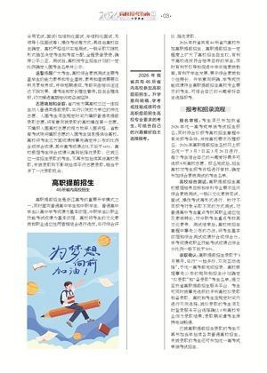 2026年我省共有46所省内高校参加高职提前招生。升学意向明确、学考或技能成绩符合高职提前招生高校专业要求的考生,可结合自己的兴趣爱好自主选择报考。