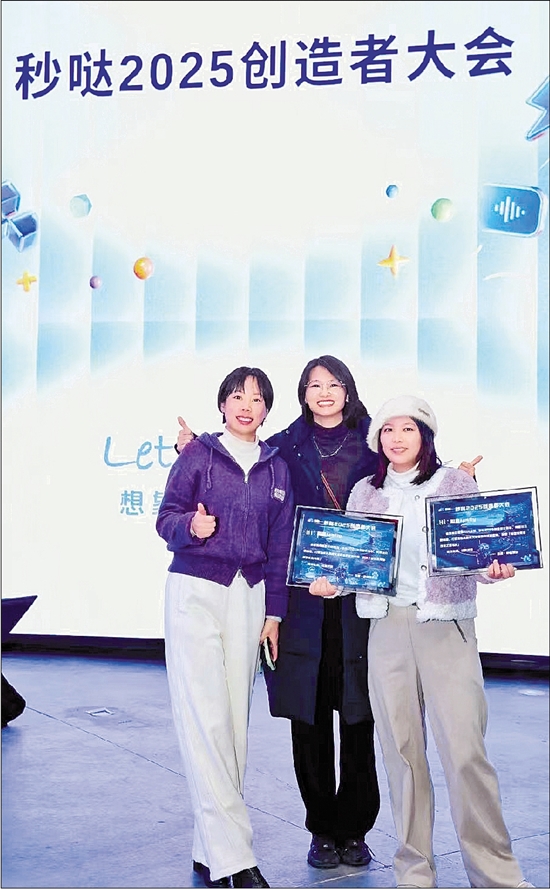 陈莺婷(右)参加比赛获奖。