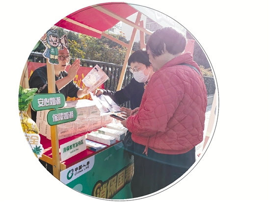 “消保国寿潮”活动中,工作人员向市民宣传消保知识。