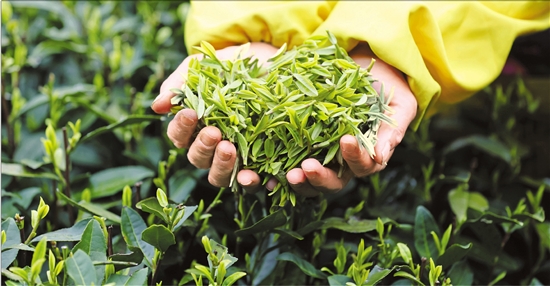 3月19日,杭州西湖龙井核心产区龙井村茶园,采茶工采摘头茬“龙井43”。 本报记者 魏志阳 徐彦 摄