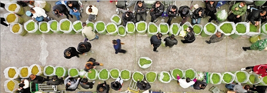 3月18日,丽水市松阳县的浙南茶叶市场人头攒动,来自全国各地的茶叶采购商汇聚于此,抢购新茶。 本报记者 梁臻 胡元勇 周旭辉 通讯员 吴洋飞 摄