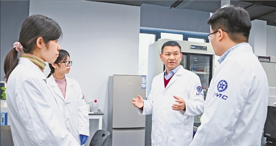 谭蔚泓(右二)在和科研人员讨论。 受访者供图