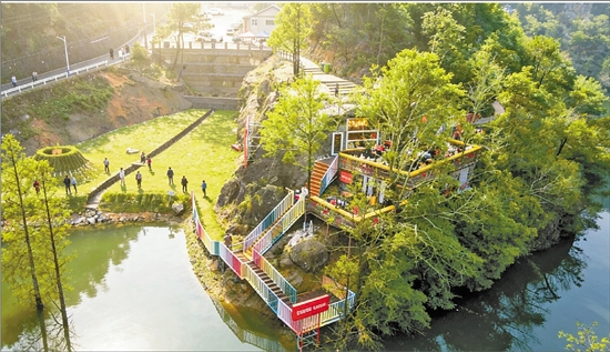 游客打卡稽东一桌土菜片区——雪窦岭悬崖咖啡