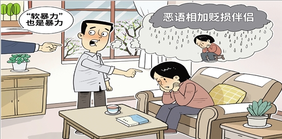 恶语相加贬损伴侣;以威胁、恐吓手段控制配偶……这些行为虽没有留下明显的身体外伤,却造成持久的心理创伤,今年是反家庭暴力法实施十周年。最高人民法院3月30日发布典型案例,以案释法阐明“软暴力”也是家庭暴力,以司法审判之力,推动构建平等、尊重、信任的婚姻家庭关系。 新华社发 |
