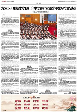 从党的二十届四中全会审议通过“十五五”规划建议,到十四届全国人大四次会议审查批准“十五五”规划纲要,党的主张通过法定程序转化为国家意志,成为党中央团结带领亿万人民乘势而上、全面建设社会主义现代化国家新的一程上的行动纲领。