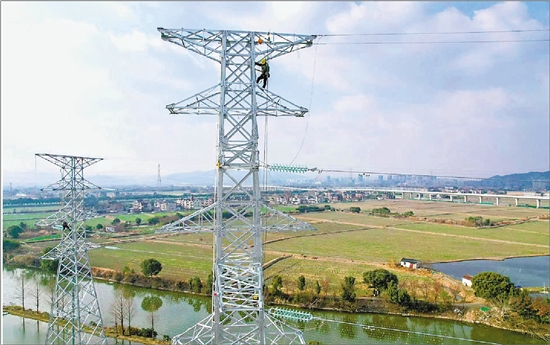电网工作人员正在全力保障沿线电路运行安全 国网湖州供电公司供图