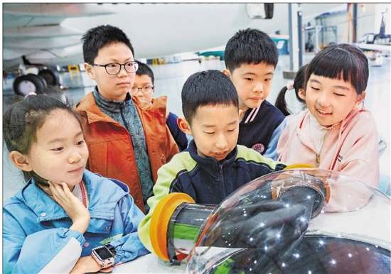 图为4月2日,来自金华各校的学生们走进金华职业技术大学产教园内的航空航天科普基地,零距离体验航天科技。