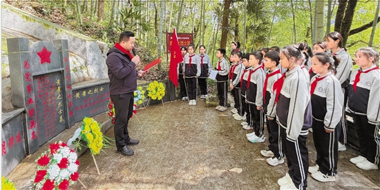 4月1日,丽水碧湖小学的少先队员来到黄景之烈士墓前开展祭扫活动。 通讯员 林雅妮 摄