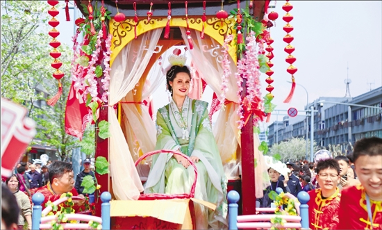 4月4日,蚕花庙会在湖州市德清县新市古镇举行。