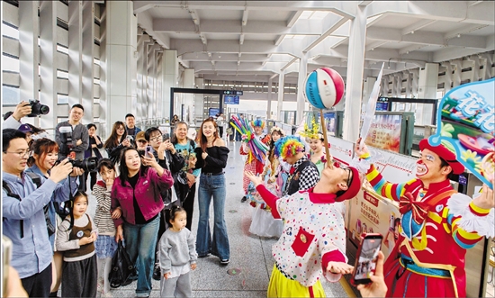 4月4日,金华市轨道交通集团联合东阳横店国际马戏城开展“乘着金轨去撒欢”春假特别活动。 通讯员 胡肖飞 摄
