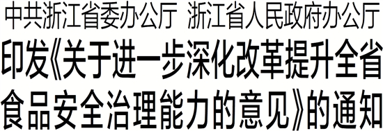 中共浙江省委办公厅 浙江省人民政府办公厅 印发《关于进一步深化改革提升全省食品安全治理能力的意见》的通知