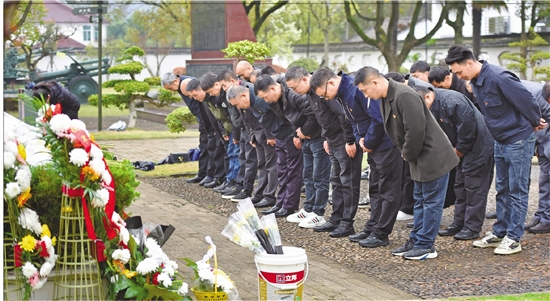 4月3日,各地各界干部群众相继来到长兴新四军苏浙军区纪念馆,缅怀革命先烈。