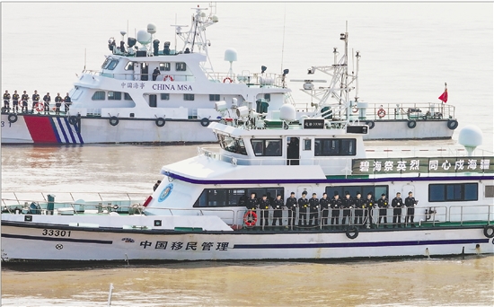 4月2日,舟山出入境边防检查站联合公安、海事等部门开展海上祭奠活动,弘扬革命精神,强化使命担当。 通讯员 胡锦 方迎豪 摄