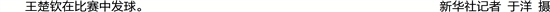 王楚钦在比赛中发球。 新华社记者 于洋 摄