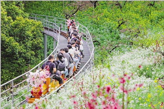 4月5日,游客在长兴县和平镇城山沟景区踏青赏花。 通讯员 谭云俸 摄