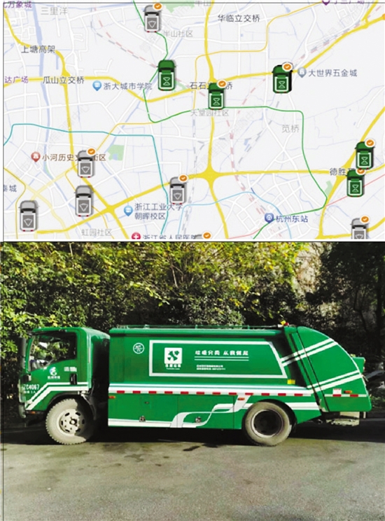 杭州生活垃圾数智治理平台记录下每一辆垃圾清运车辆位置。