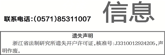 浙江省法制研究所遗失开户许可证,核准号:J3310012924205,声明作废。