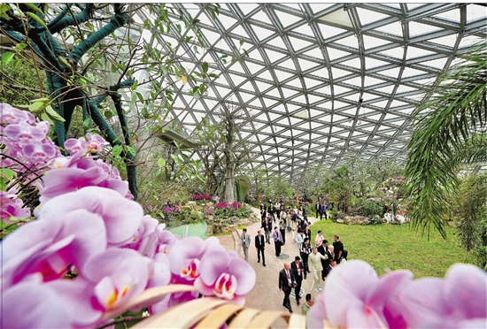 游客在葳蕤馆中观赏各类植物。