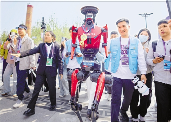夺冠后的机器人“闪电”备受瞩目。本报记者 倪雁强 刘晨茵 侴雪妍 摄