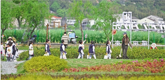 乡村园林(瑞安)分会场,曹村天井垟田园综合体改造提升后游人如织。 本报记者 董旭明 摄