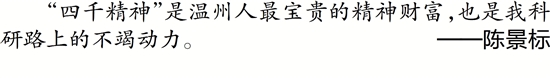 “四千精神”是温州人最宝贵的精神财富,也是我科研路上的不竭动力。 ——陈景标