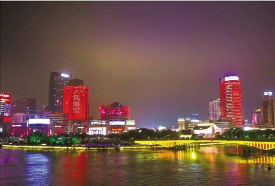 | 4月23日是人民海军成立77周年纪念日。从4月21日起至24日,宁波三江口每晚通过灯光秀,展现人民海军向海图强的闪亮画卷,用美轮美奂的灯光秀向人民海军献上美好的生日祝福。 本报记者 彭鹏 通讯员 刘冬冬 王新宇 摄 |