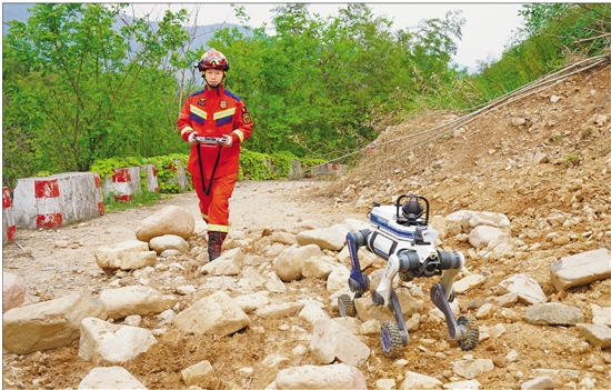 何志刚操控遥控器展示机器狗的越野能力。 通讯员 马丁 摄