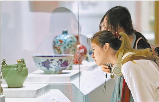 4月21日,“修·饰——古陶瓷修补装饰技艺展”现场,市民游客正在观展。 本报记者 徐文迪 通讯员 李恬怡 摄