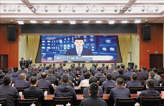 4月23日,义乌市党员干部收看《新闻联播》。 通讯员 王怿杰 摄